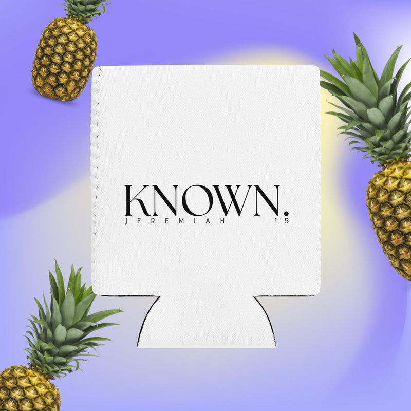 This can cooler is a small piece of your daily armor. Featuring the powerful 'Known' design, it’s a constant, high-quality reminder that God knew you by name and gave you a purpose before time began.
