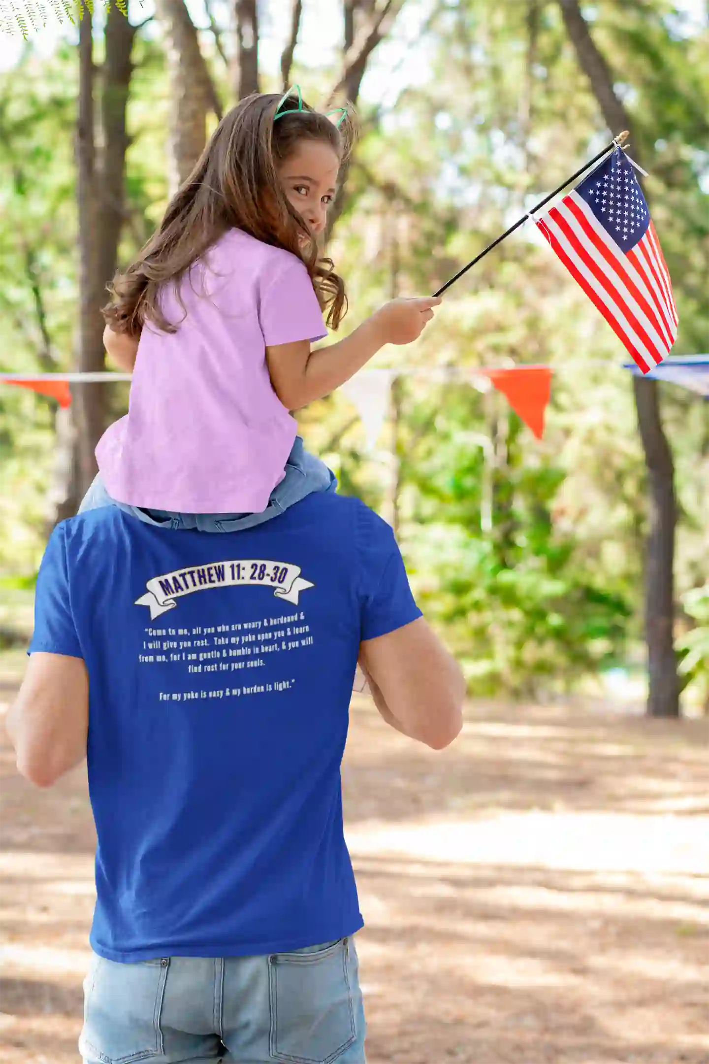 The Christ’s Carpentry T-Shirt is a bold reminder that true rest is found in Jesus alone. Featuring a front emblem—Christ’s Carpentry: Custom Yokes Since 8 AD—and Matthew 11:28–30 on the back, it points to the Savior who carries our burdens and restores weary hearts.