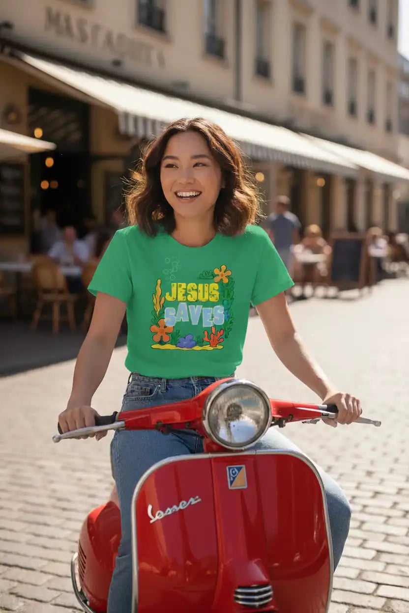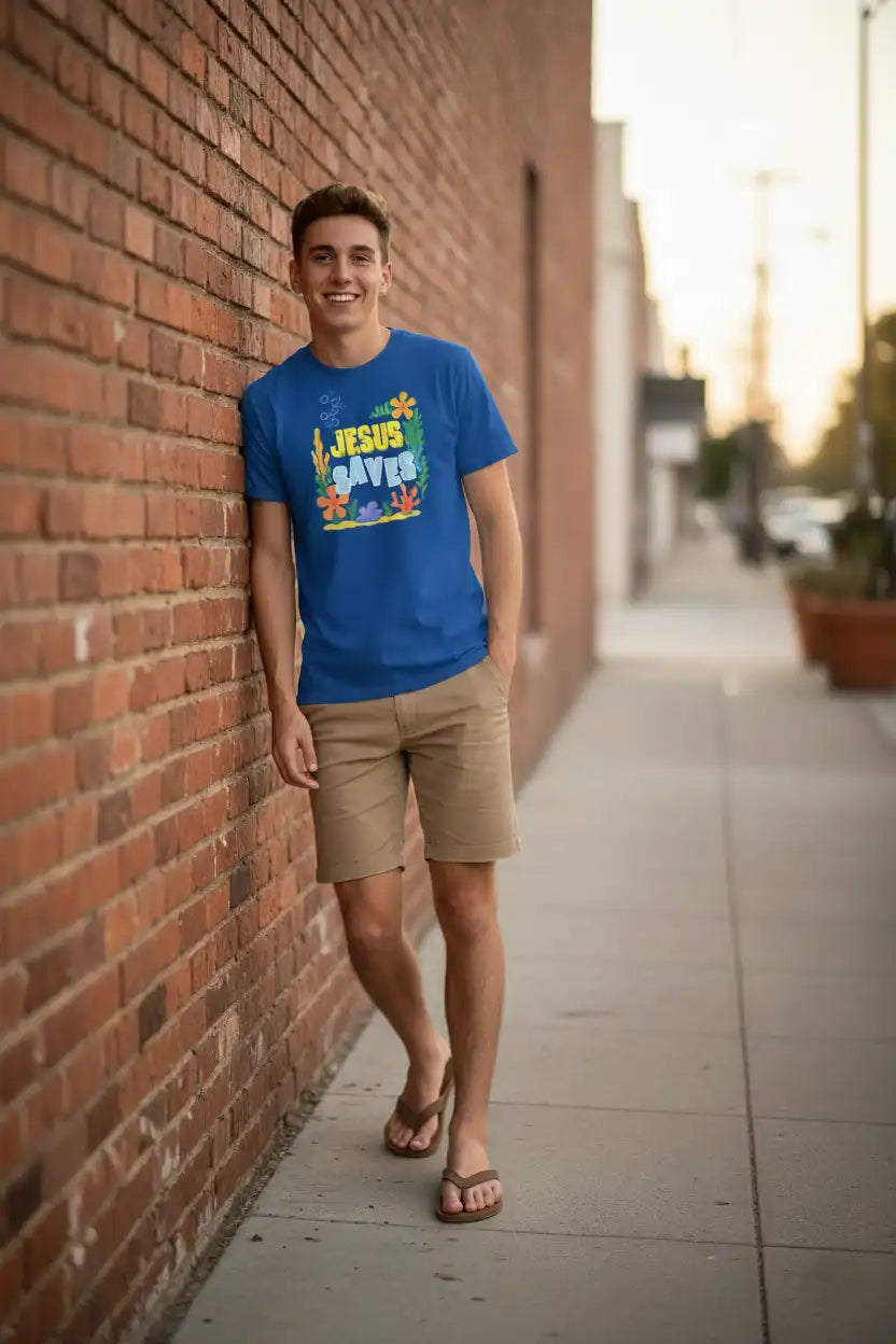 Featuring playful, ocean cartoon-inspired graphics and the message “Jesus calms the seas,” this Christian tee blends faith, fun, and fearless devotion.